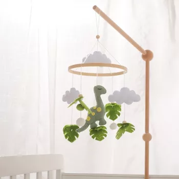Felt Dinosaur Crib Mobile with Musical Wooden Rattle Toys for Newborns